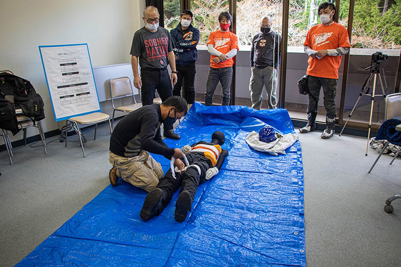 救急救命の“基礎”と、バイク特有の事故状況を踏まえた“応用”の両方をカバーしています。