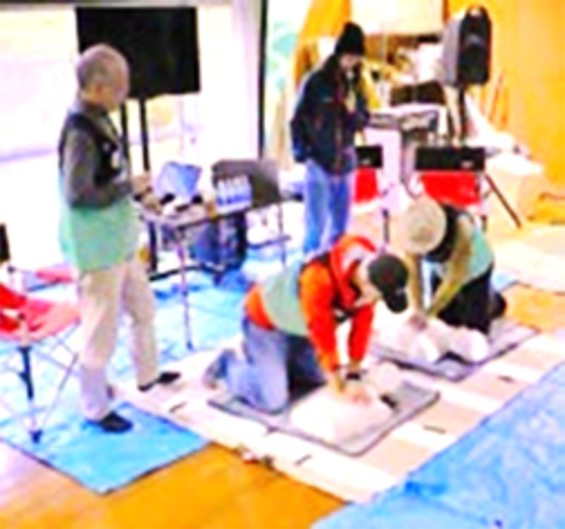 この日はCPRの方法の他、三角巾の使用法などの講習も行いました。