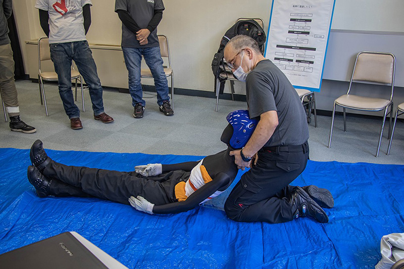救急救命の“基礎”と、バイク特有の事故状況を踏まえた“応用”の両方をカバーしています。